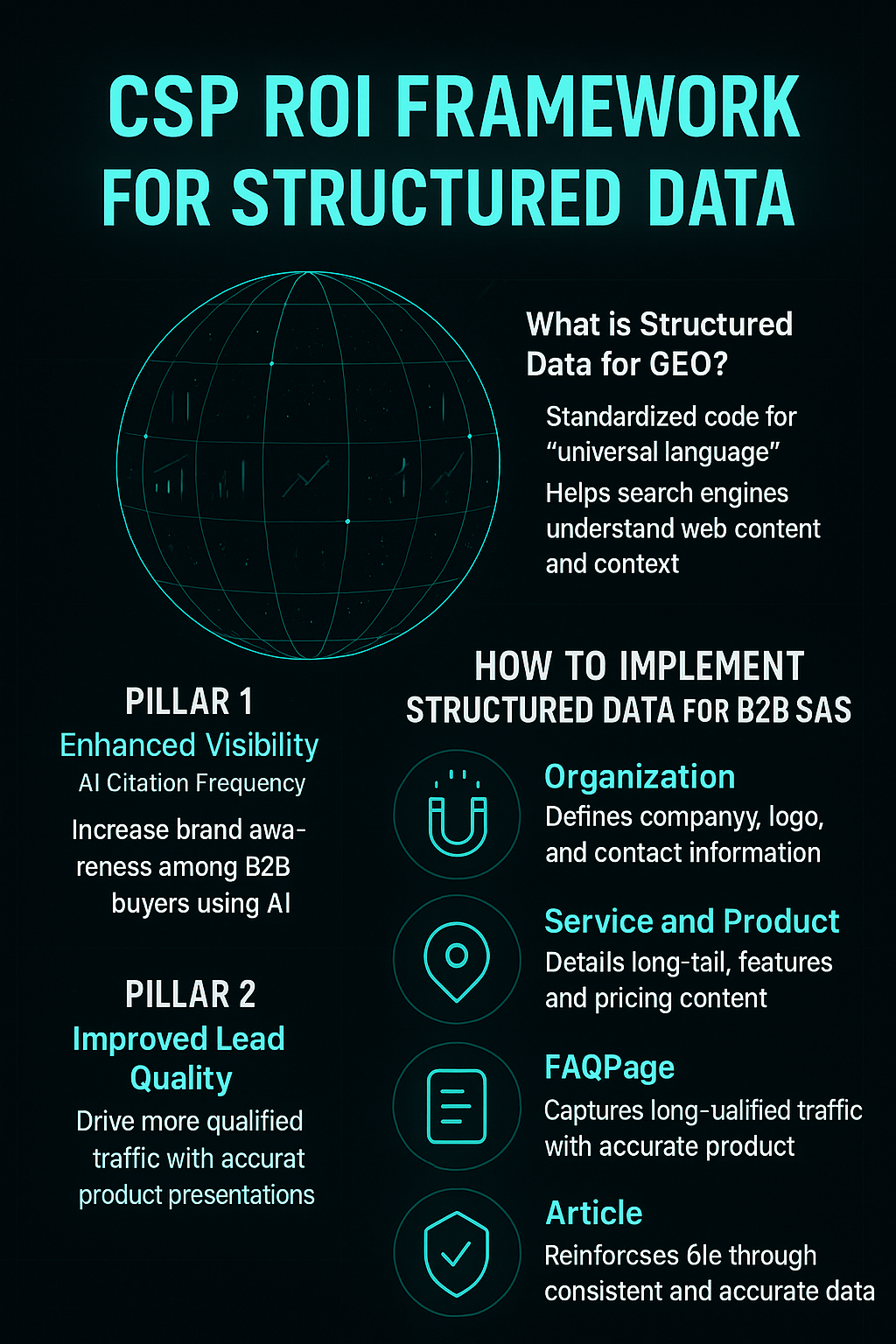 At CSP Agency, we developed an ROI framework to help B2B SaaS companies measure the return from structured data initiatives. This model shifts the conversation from a technical task to a strategic driver. The framework is built on three pillars of measurable value: Enhanced Visibility, Improved Lead Quality, and Increased Authority.